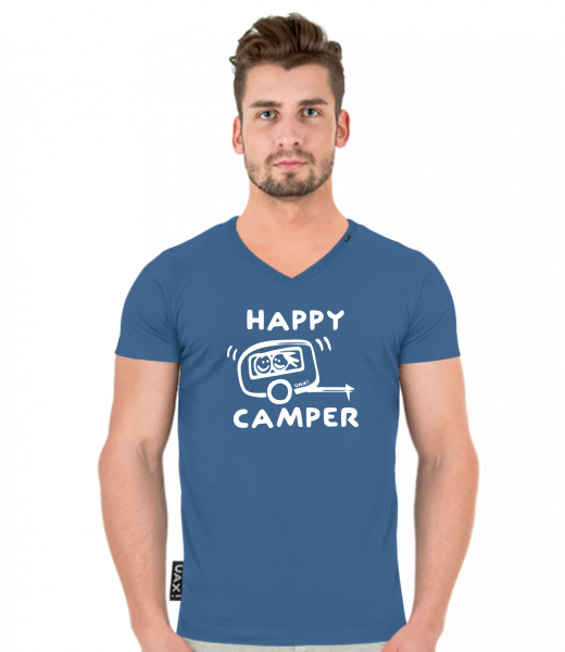 We make sustainable UAX clothing! - hand sewn in the Czech Republic uaxMen uaxAll productsT-shirtsT-SHIRTS SLIM FIT V NECKdesign 1116 - HAPPY CAMPERMOONLIGHT BLUE