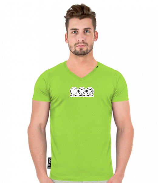 We make sustainable UAX clothing! - hand sewn in the Czech Republic uaxMen uaxAll productsT-shirtsT-SHIRTS SLIM FIT V NECKdesign 1120 - BEFORE PARTY AFTERPARROT GREEN