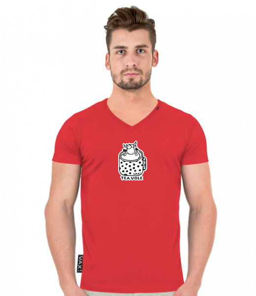 Men's T-shirt SLIM FIT with V nec for man with design 1124 TEA VOLE in color RED