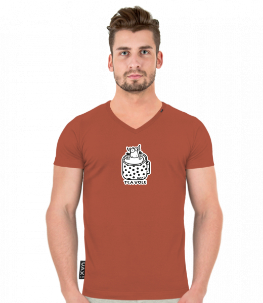 Men's T-shirt SLIM FIT with V nec for man with design 1124 TEA VOLE in color TERRA