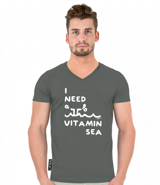 We make sustainable UAX clothing! - hand sewn in the Czech Republic uaxMen uaxAll productsT-shirtsT-SHIRTS SLIM FIT V NECKdesign 1132 - I NEED VITAMIN SEADARK GRAY