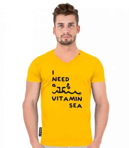 We make sustainable UAX clothing! - hand sewn in the Czech Republic uaxMen uaxAll productsT-shirtsT-SHIRTS SLIM FIT V NECKdesign 1132 - I NEED VITAMIN SEAGOLDEN CREAM