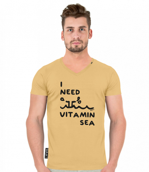 Men's T-shirt SLIM FIT with V nec for man with design 1132 I NEED VITAMIN SEA in color MUSTARD