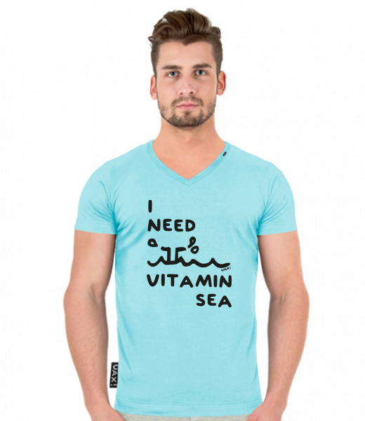 We make sustainable UAX clothing! - hand sewn in the Czech Republic uaxMen uaxAll productsT-shirtsT-SHIRTS SLIM FIT V NECKdesign 1132 - I NEED VITAMIN SEAPASTEL BLUE