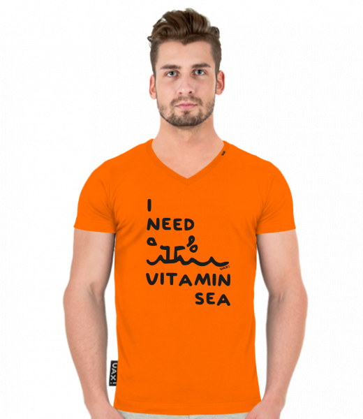 We make sustainable UAX clothing! - hand sewn in the Czech Republic uaxMen uaxAll productsT-shirtsT-SHIRTS SLIM FIT V NECKdesign 1132 - I NEED VITAMIN SEASIGNAL ORANGE