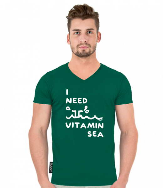 Men's T-shirt SLIM FIT with V nec for man with design 1132 I NEED VITAMIN SEA in color UNIVERSITY GREEN