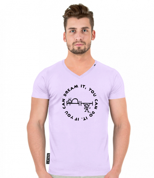 Men's T-shirt SLIM FIT with V nec for man with design 1133 IF YOU CAN DREAM IT in color LAVENDER