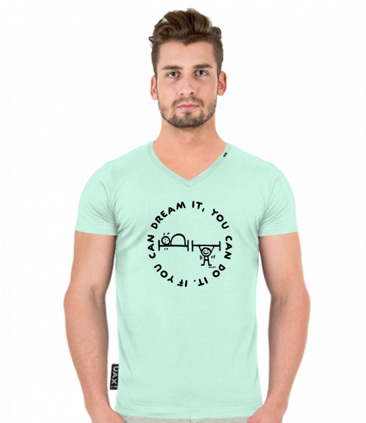 Men's T-shirt SLIM FIT with V nec for man with design 1133 IF YOU CAN DREAM IT in color MINT