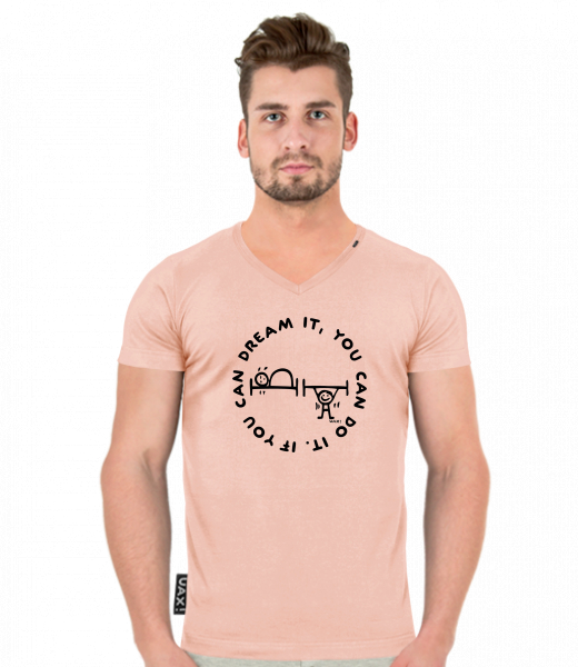 Men's T-shirt SLIM FIT with V nec for man with design 1133 IF YOU CAN DREAM IT in color PEACH