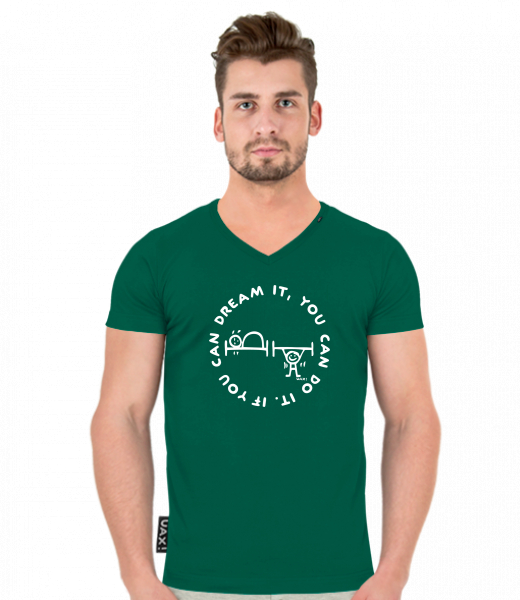Men's T-shirt SLIM FIT with V nec for man with design 1133 IF YOU CAN DREAM IT in color UNIVERSITY GREEN