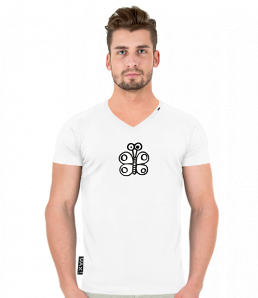 We make sustainable UAX clothing! - hand sewn in the Czech Republic uaxMen uaxAll productsT-shirtsT-SHIRTS SLIM FIT V NECKdesign 1154 - MOTÝLWHITE