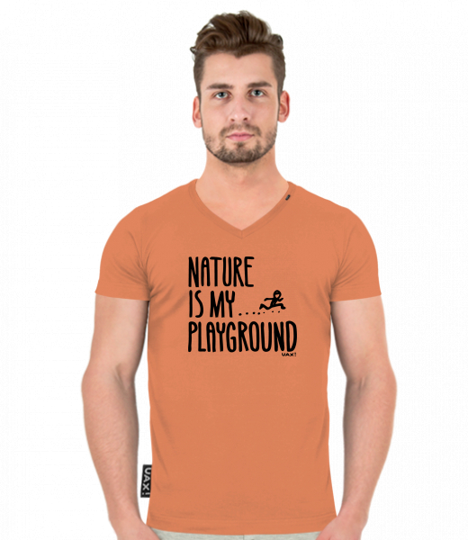 We make sustainable UAX clothing! - hand sewn in the Czech Republic uaxMen uaxAll productsT-shirtsT-SHIRTS SLIM FIT V NECKdesign 1160 - NATURE IS MY PLAYGROUNDMANDARIAN ORANGE