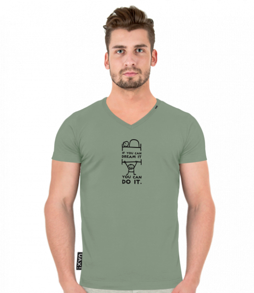 Men's T-shirt SLIM FIT with V nec for man with design 1173 UAX! DO IT in color OLIVA