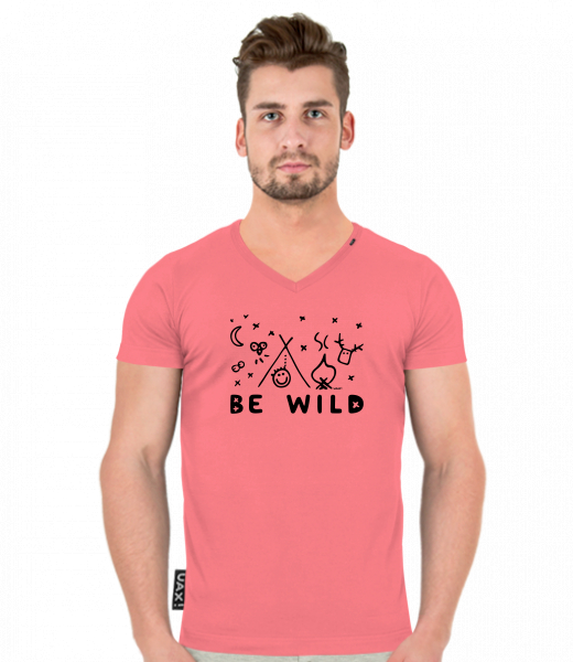 Men's T-shirt SLIM FIT with V nec for man with design 1174 BE WILD in color LOSOSOVA