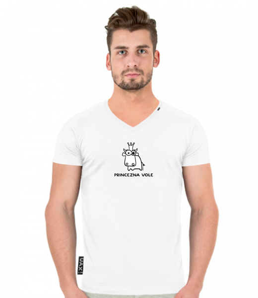 Men's T-shirt SLIM FIT with V nec for man with design 1175 PRINCEZNA VOLE in color WHITE