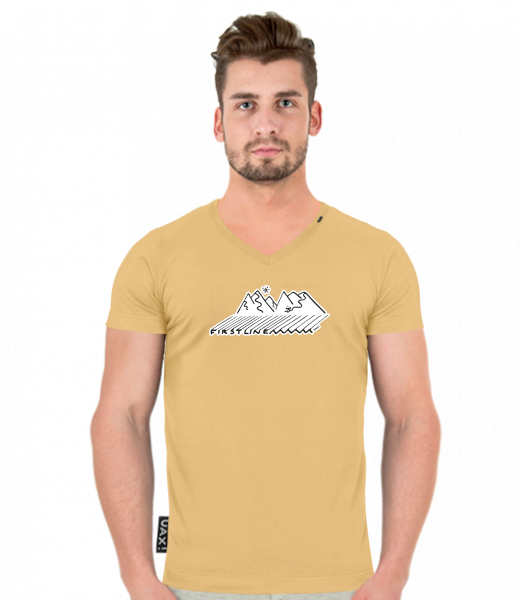 We make sustainable UAX clothing! - hand sewn in the Czech Republic uaxMen uaxAll productsT-shirtsT-SHIRTS SLIM FIT V NECKdesign 1181 - FIRST LINEMUSTARD