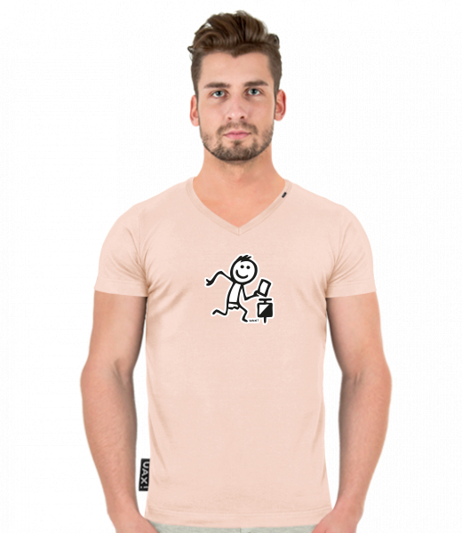 From 19.1.2023, the size range has shifted. Very comfortable men's T-shirt SLIM FIT with V neck and UAX! design. Slim cut with short sleeves and V neck. Made of 100% cotton, print selection on the front. Choice of many colors. The shirt is sewn and silk-screen printed in the Czech Republic!