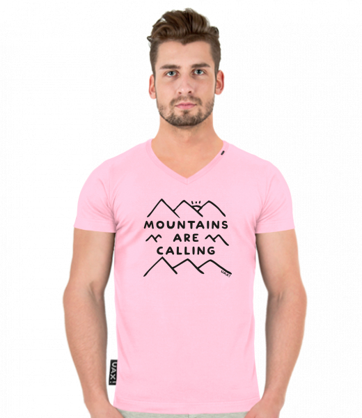 We make sustainable UAX clothing! - hand sewn in the Czech Republic uaxMen uaxAll productsT-shirtsT-SHIRTS SLIM FIT V NECKdesign 1204 - MOUNTAINS ARE CALLINGBABY PINK