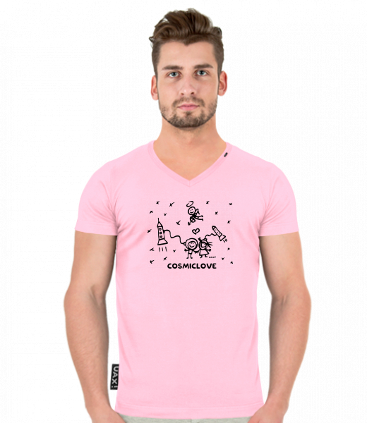We make sustainable UAX clothing! - hand sewn in the Czech Republic uaxMen uaxAll productsT-shirtsT-SHIRTS SLIM FIT V NECKdesign 1207 - COSMICLOVEBABY PINK