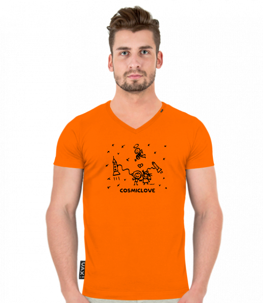 We make sustainable UAX clothing! - hand sewn in the Czech Republic uaxMen uaxAll productsT-shirtsT-SHIRTS SLIM FIT V NECKdesign 1207 - COSMICLOVESIGNAL ORANGE