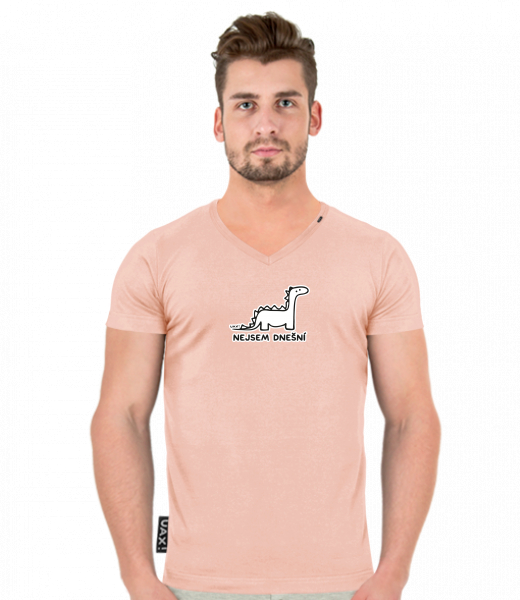 Men's T-shirt SLIM FIT with V nec for man with design 1209 NEJSEM DNEŠNÍ in color PEACH