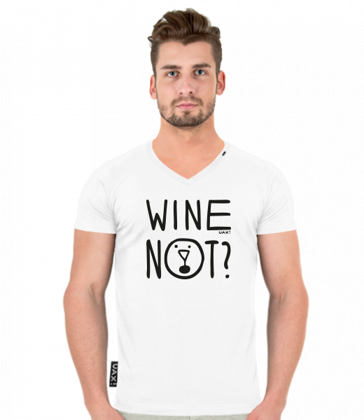 Men's T-shirt SLIM FIT with V nec for man with design 1210 WINE NOT in color WHITE