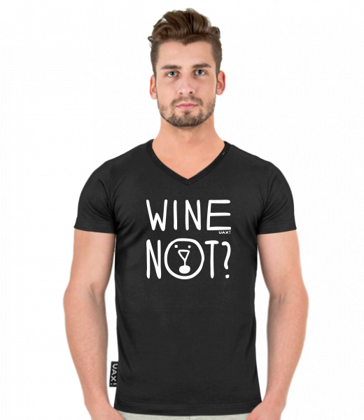Men's T-shirt SLIM FIT with V nec for man with design 1210 WINE NOT in color BLACK
