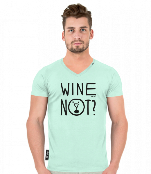 Men's T-shirt SLIM FIT with V nec for man with design 1210 WINE NOT in color MINT