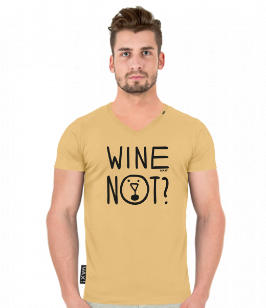 Men's T-shirt SLIM FIT with V nec for man with design 1210 WINE NOT in color MUSTARD