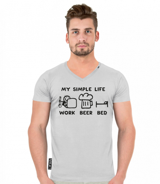We make sustainable UAX clothing! - hand sewn in the Czech Republic uaxMen uaxAll productsT-shirtsT-SHIRTS SLIM FIT V NECKdesign 1211 - MY SIMPLE LIFE WORK BEER BEDCEMENT