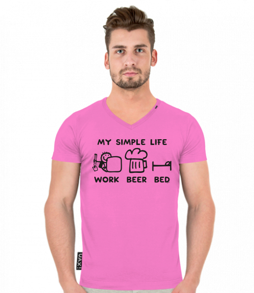 We make sustainable UAX clothing! - hand sewn in the Czech Republic uaxMen uaxAll productsT-shirtsT-SHIRTS SLIM FIT V NECKdesign 1211 - MY SIMPLE LIFE WORK BEER BEDCLASSIC PINK