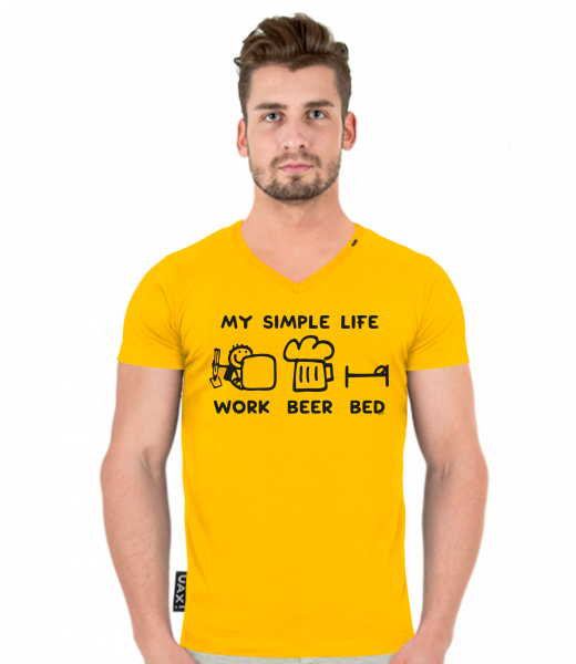 We make sustainable UAX clothing! - hand sewn in the Czech Republic uaxMen uaxAll productsT-shirtsT-SHIRTS SLIM FIT V NECKdesign 1211 - MY SIMPLE LIFE WORK BEER BEDGOLDEN CREAM