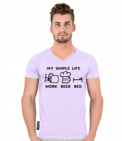 We make sustainable UAX clothing! - hand sewn in the Czech Republic uaxMen uaxAll productsT-shirtsT-SHIRTS SLIM FIT V NECKdesign 1211 - MY SIMPLE LIFE WORK BEER BEDLAVENDER