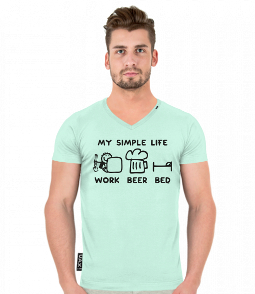 We make sustainable UAX clothing! - hand sewn in the Czech Republic uaxMen uaxAll productsT-shirtsT-SHIRTS SLIM FIT V NECKdesign 1211 - MY SIMPLE LIFE WORK BEER BEDMINT