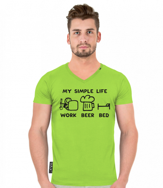 We make sustainable UAX clothing! - hand sewn in the Czech Republic uaxMen uaxAll productsT-shirtsT-SHIRTS SLIM FIT V NECKdesign 1211 - MY SIMPLE LIFE WORK BEER BEDPARROT GREEN