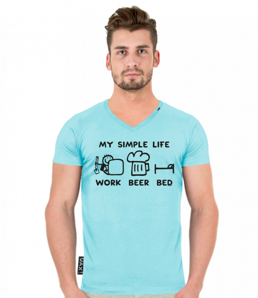 We make sustainable UAX clothing! - hand sewn in the Czech Republic uaxMen uaxAll productsT-shirtsT-SHIRTS SLIM FIT V NECKdesign 1211 - MY SIMPLE LIFE WORK BEER BEDPASTEL BLUE