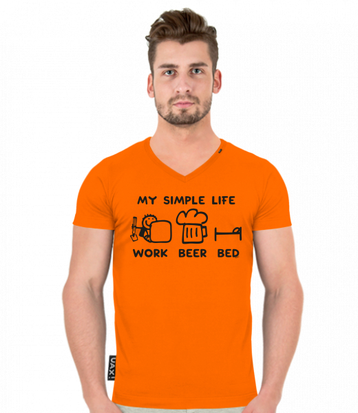 We make sustainable UAX clothing! - hand sewn in the Czech Republic uaxMen uaxAll productsT-shirtsT-SHIRTS SLIM FIT V NECKdesign 1211 - MY SIMPLE LIFE WORK BEER BEDSIGNAL ORANGE