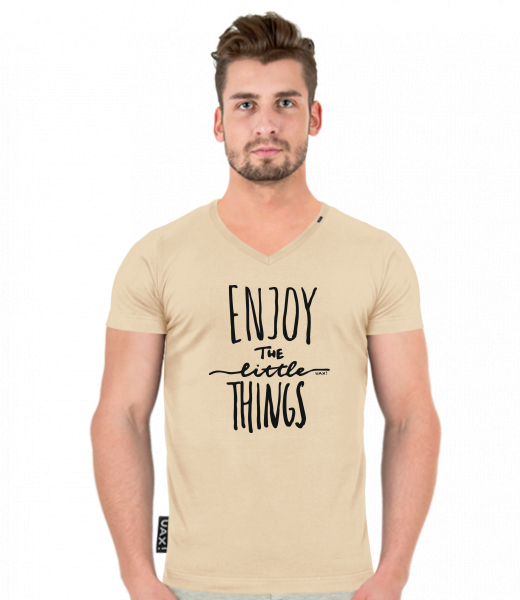 We make sustainable UAX clothing! - hand sewn in the Czech Republic uaxMen uaxAll productsT-shirtsT-SHIRTS SLIM FIT V NECKdesign 1222 - ENJOY THE LITTLE THINGSCARAMEL