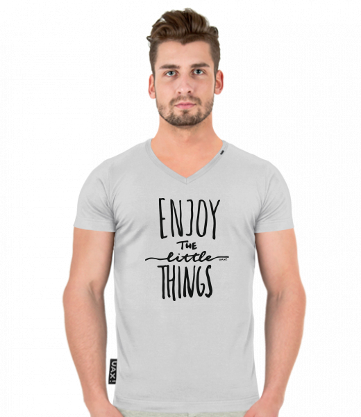 We make sustainable UAX clothing! - hand sewn in the Czech Republic uaxMen uaxAll productsT-shirtsT-SHIRTS SLIM FIT V NECKdesign 1222 - ENJOY THE LITTLE THINGSCEMENT
