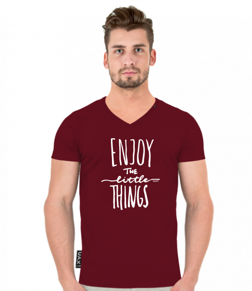 Men's T-shirt SLIM FIT with V nec for man with design 1222 ENJOY THE LITTLE THINGS in color DARK RED