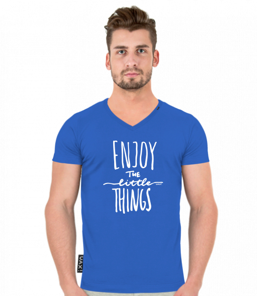 Men's T-shirt SLIM FIT with V nec for man with design 1222 ENJOY THE LITTLE THINGS in color ROYAL BLUE