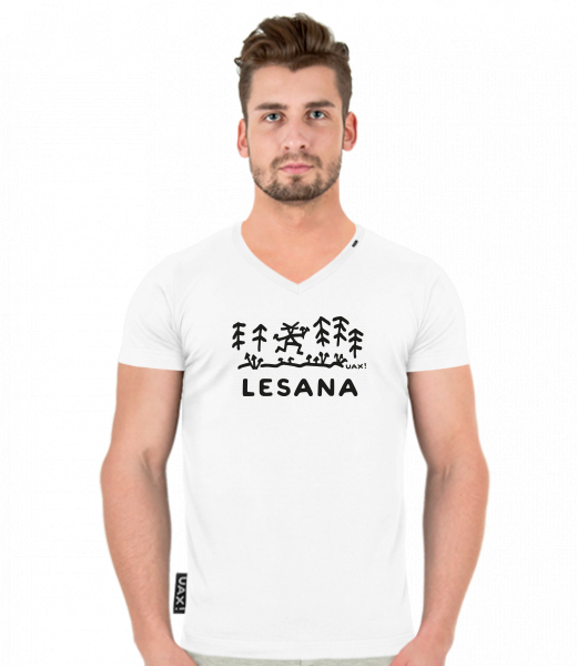 We make sustainable UAX clothing! - hand sewn in the Czech Republic uaxMen uaxAll productsT-shirtsT-SHIRTS SLIM FIT V NECKdesign 1224 - LESANAWHITE