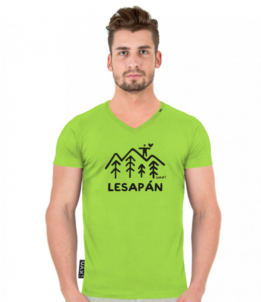We make sustainable UAX clothing! - hand sewn in the Czech Republic uaxMen uaxAll productsT-shirtsT-SHIRTS SLIM FIT V NECKdesign 1225 - LESAPÁNPARROT GREEN