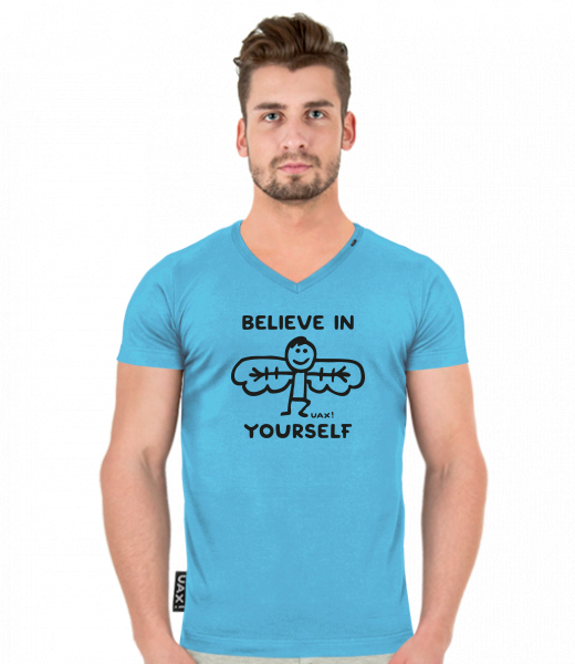 We make sustainable UAX clothing! - hand sewn in the Czech Republic uaxMen uaxAll productsT-shirtsT-SHIRTS SLIM FIT V NECKdesign 1228 - BELIEVE IN YOURSELFBLUE ATOLL