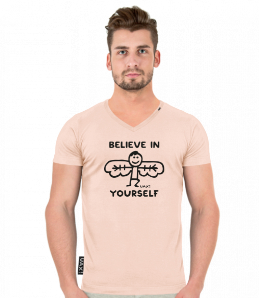 We make sustainable UAX clothing! - hand sewn in the Czech Republic uaxMen uaxAll productsT-shirtsT-SHIRTS SLIM FIT V NECKdesign 1228 - BELIEVE IN YOURSELFCAPPUCINO