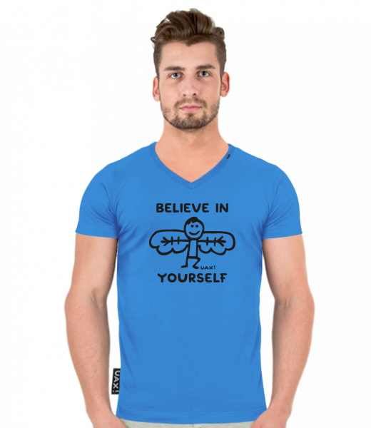 We make sustainable UAX clothing! - hand sewn in the Czech Republic uaxMen uaxAll productsT-shirtsT-SHIRTS SLIM FIT V NECKdesign 1228 - BELIEVE IN YOURSELFCAPRI BLUE