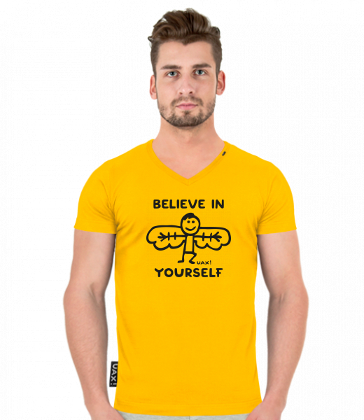 We make sustainable UAX clothing! - hand sewn in the Czech Republic uaxMen uaxAll productsT-shirtsT-SHIRTS SLIM FIT V NECKdesign 1228 - BELIEVE IN YOURSELFGOLDEN CREAM