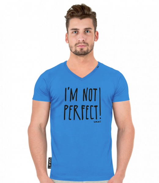 We make sustainable UAX clothing! - hand sewn in the Czech Republic uaxMen uaxAll productsT-shirtsT-SHIRTS SLIM FIT V NECKdesign 1230 - IM NOT PERFECTCAPRI BLUE