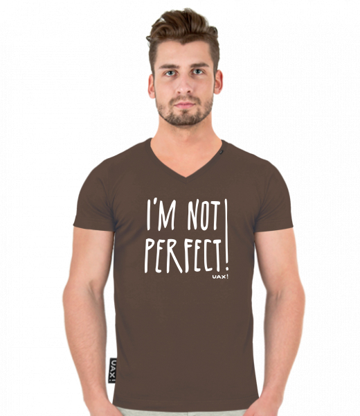 We make sustainable UAX clothing! - hand sewn in the Czech Republic uaxMen uaxAll productsT-shirtsT-SHIRTS SLIM FIT V NECKdesign 1230 - IM NOT PERFECTCHESTNUT