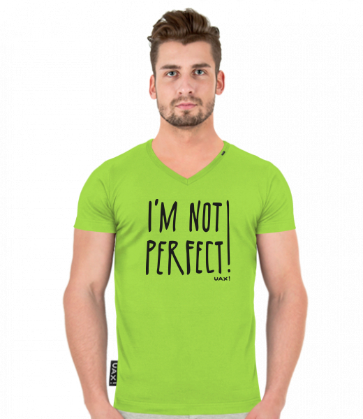 We make sustainable UAX clothing! - hand sewn in the Czech Republic uaxMen uaxAll productsT-shirtsT-SHIRTS SLIM FIT V NECKdesign 1230 - IM NOT PERFECTPARROT GREEN
